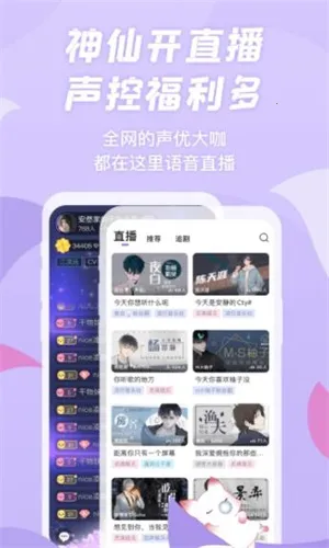 3. 声优大咖齐聚语音直播,能与阿杰、夏磊等众多知名声优连麦互动,还有暖心主播陪伴。
