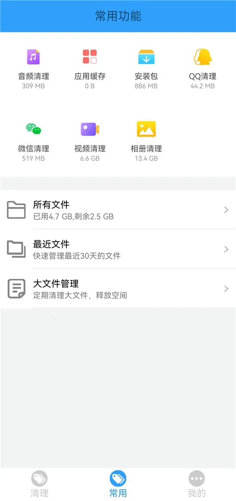 1. 能快速扫描手机垃圾文件,一键释放存储空间,让手机更清爽。