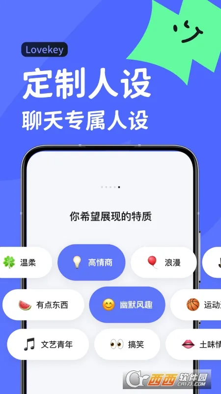 Lovekey是一款高情商手机输入法app,有智能对话功能。能根据聊天环境提供参考对话,还有多种特色功能,如聊天情感定制、精选开场白预设等,使用简单,助用户轻松聊天,高效沟通。