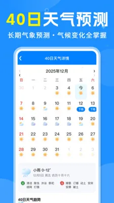 准候天气 2026 官方正版,时刻提供精准及时天气信息。有定位与实时监测功能,能准确呈现气象数据。还具备公历农历日历,含节气等信息,以及 7 日天气预报,助您知天从容出行。