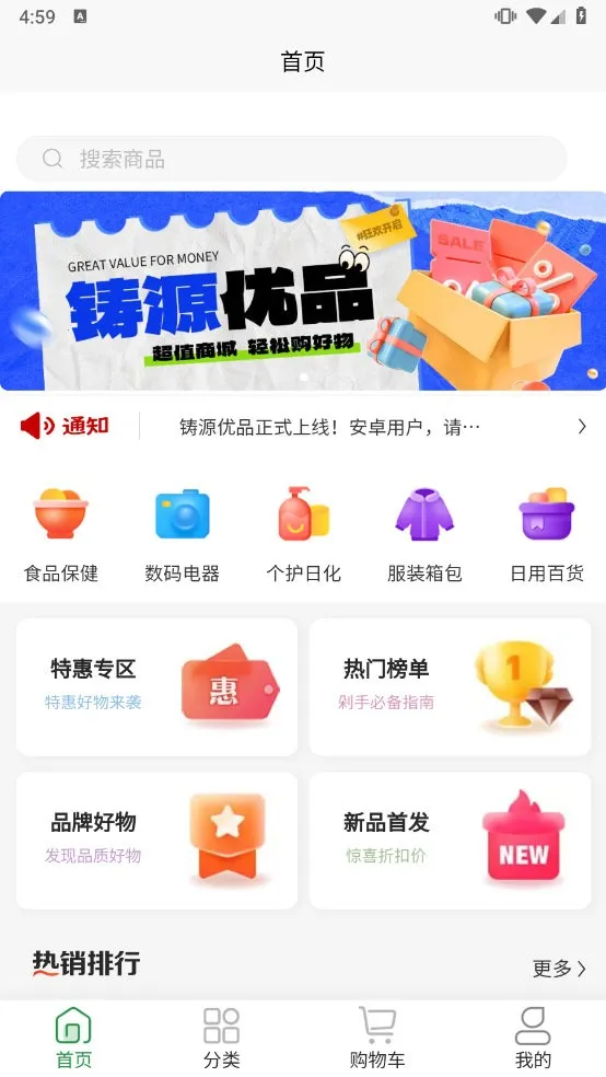 丰富商品与分类:铸源优品拥有海量优质商品,涵盖日用百货、数码电器、食品保健等多个品类,且都进行了细致分类,方便用户筛选。