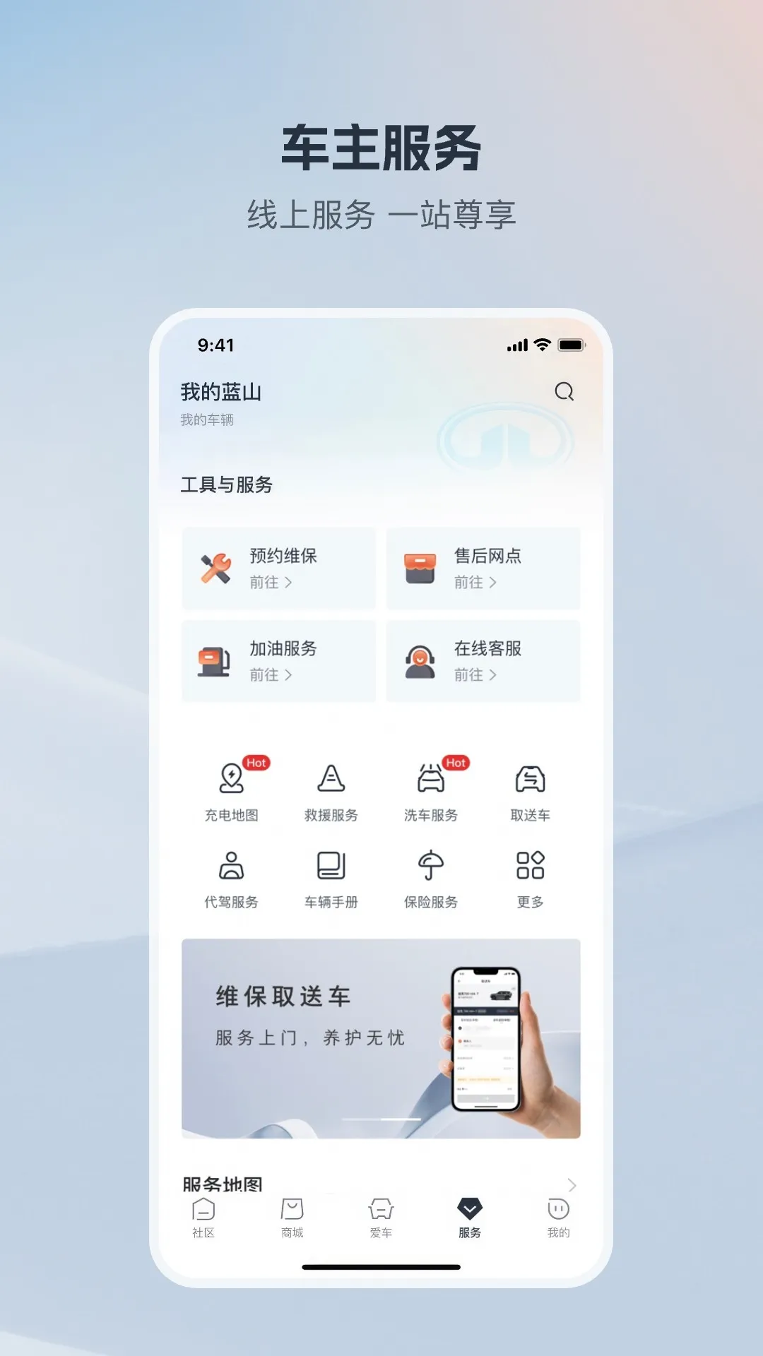 用车养车服务全闭环:在线预约维保、查询维修进度、获取电子质保、申领救援服务、查看用车提醒,覆盖各类用车场景,服务响应快、流程透明可溯。