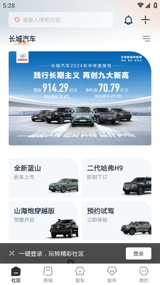 长城汽车APP是长城汽车官方打造的一站式智能移动服务平台,覆盖哈弗、魏牌等五大品牌。提供车型资讯、购车用车养车服务、跨品牌车控、积分互通等功能,还能与车友互动,让用户轻松掌控汽车生活。