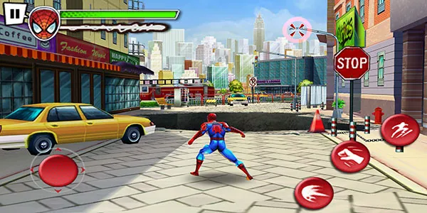 这款游戏能满足你对超级英雄战斗的热血渴望。它的操作很简单,左侧摇杆控制移动,右侧控制技能攻击和跳跃,部分环节还有QTE操作提示。游戏画面超棒,场景丰富,你能在大楼间自由穿梭。
