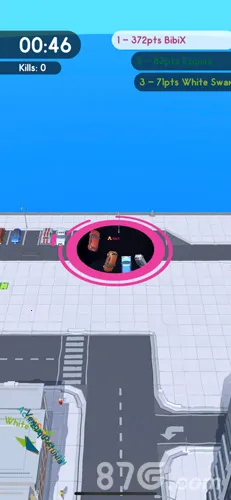玩法跟以前的贪吃蛇类似,大家操控自己的黑洞吞食物品和对手,每局都有时间限制。开局先吃小物品,像杆子、报亭等,等黑洞变大后再考虑吞噬汽车和房子。沿着道路找东西时,要避开比自己体型大的对手,因为竞争对手可互相吞并。