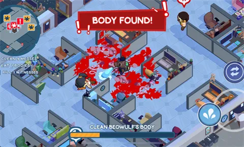 游戏玩法丰富,能使用多种工具完成清洁任务,随着关卡推进解锁更多工具应对复杂场景。隐藏身份很关键,被同事看到狼人真面目得赶紧行动。而且速度决定评分,完成时间越短得分越高。还有不少攻略技巧,比如注意被动技能触发及时清理血迹,巧用NPC移动规律避开视线等。游戏特色满满,有独特环环相扣的世界,动态NPC系统,7个古怪多变的关卡,3种多功能工具。它把解谜策略和黑色幽默融合得很好,节奏紧凑,充满挑战与意外,能给你带来超多乐趣,赶紧来试试吧!