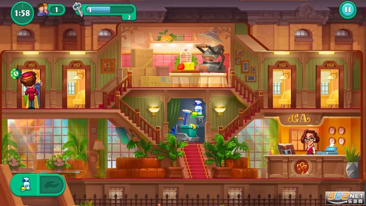 3. 以顾客服务为核心,玩法丰富,涵盖住房、退房、打扫、安排新客人等流程,还有升级设施、解锁新场景等内容。