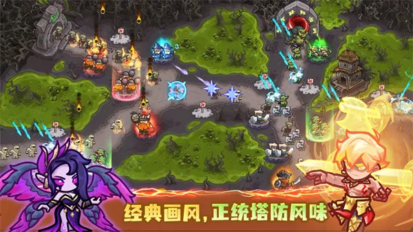 正统塔防体验:游戏拥有经典塔防玩法,能让玩家体验到熟悉的王国保卫战画风,感受正统塔防的魅力,召唤英雄守卫自己的王国。