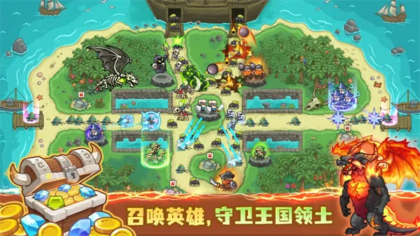 1. 拥有经典塔防玩法,能召唤英雄守卫王国,带来正统塔防体验。