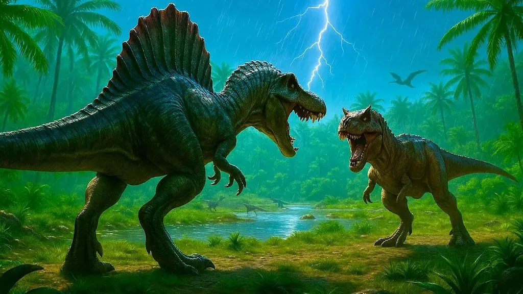 2. 提供多种可操控恐龙,每种恐龙都有独特生存风格与策略,例如霸王龙擅长蛮力和近距离压制,棘龙是半水生猎手等。
