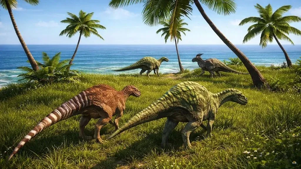 2. 高度开放的世界环境:拥有广袤的岛屿,涵盖丛林、河流、湖泊、沼泽、峭壁、火山地带等多样环境,每种环境影响恐龙多种能力,探索和走位对生存至关重要,带来丰富的游戏体验。