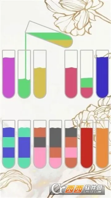 水排序分类游戏手机版是一款超有趣的排序解谜游戏。它有简单、正常、困难、专家四个等级,每个等级数十个关卡,玩家能随时在线挑战。游戏画面色彩缤纷,趣味十足。看似简单却需动脑,级别越高关卡越难。特色是点击操作简单,免费易玩能挑战大脑,还有多种难度级别。玩法是点击瓶子将有色水分类,同一瓶子颜色统一即可,全部分好颜色通关。在这里,你可凭借思维能力顺利排好水序,不用担心卡住,随时能重新开始关卡,带来无尽乐趣。