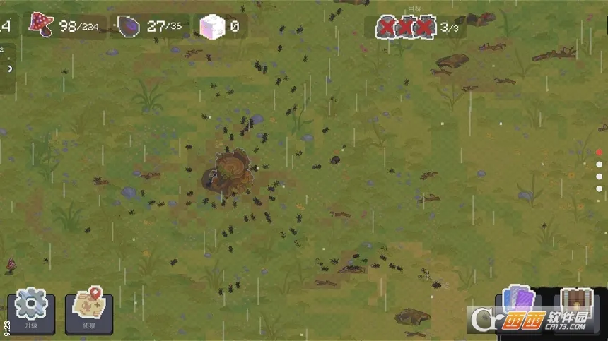蚁群模拟器2是一款以蚂蚁为主题的策略经营游戏。玩家管理蚁群,孵化蚂蚁、分配资源扩大蚁穴,探索收集资源,击败昆虫洞穴完成任务。有多种蚂蚁卡牌,像素画风,不同地图机制,玩法有趣易上手。