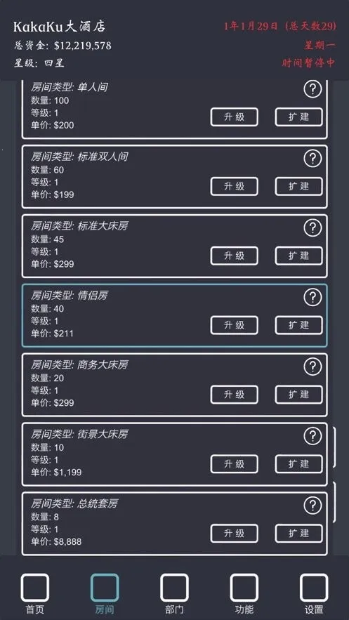 3. 等级收益挂钩:作为酒店经营者,不断提升酒店等级至关重要。因为酒店收益直接与等级紧密挂钩,等级越高,收益越丰厚。