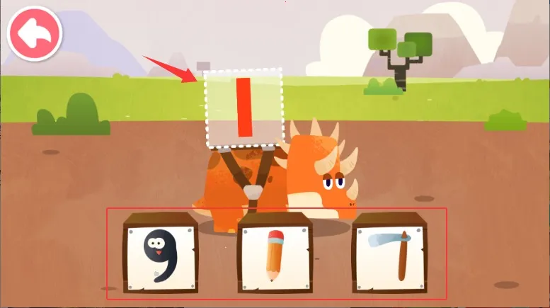 3、将屏幕上显示的图案拖动到对应的数字轮廓框中,正确匹配后会出现鼓励性的动画效果。
