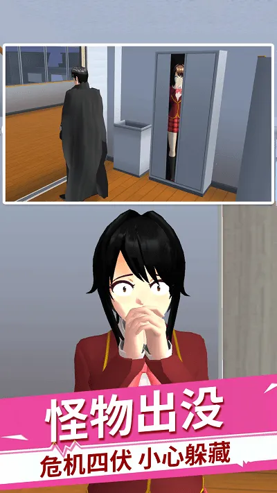 樱花高校恐怖躲猫猫2026最新版本是一款玩法新颖的恐怖躲猫猫手游。以校园为背景,融合非对称对抗与躲藏解谜。有独特暗黑童话风格、多地图多玩法,操作优化,匹配公平,能让玩家体验扮演幸存者或追击者的双重乐趣。