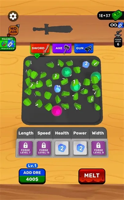 1. 可组合不同元素熔化创造终极剑,过程充满策略性,需匹配相同元素形成新元素。