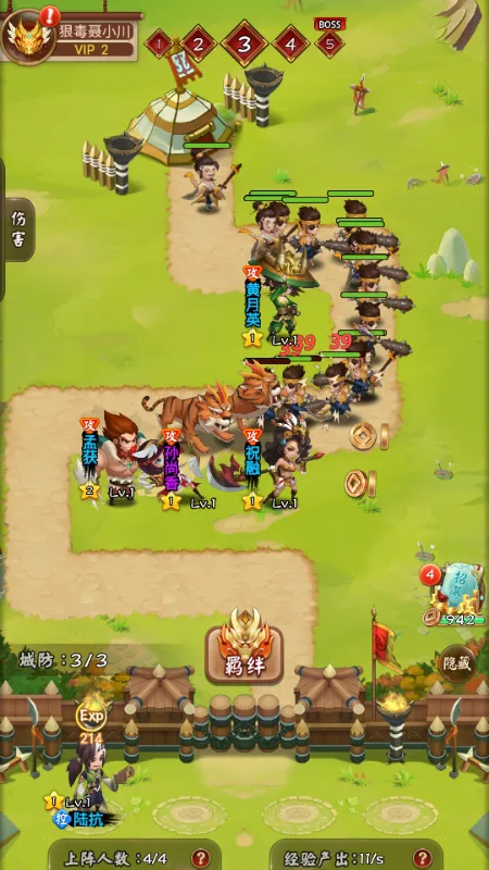 2、不同的武将有自己的技能与buff;