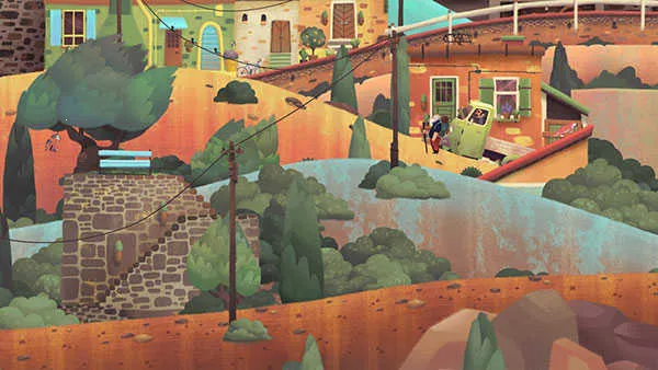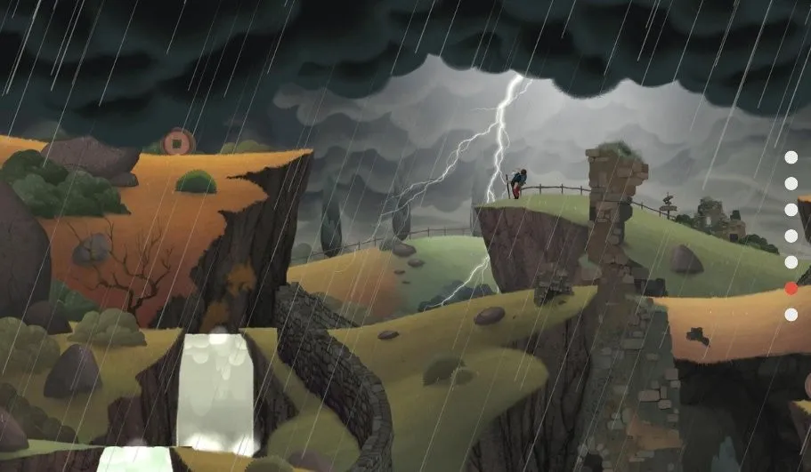 1. 手绘风格独特:游戏中每一帧画面都如明信片般隽永,从暮色浸染的海岸线到云雾缭绕的丘陵小径,手绘风格赋予场景独特温度与质感,地貌成为可交互叙事语言,拉动山丘延展桥梁重塑地势,为老人铺就回忆之路。