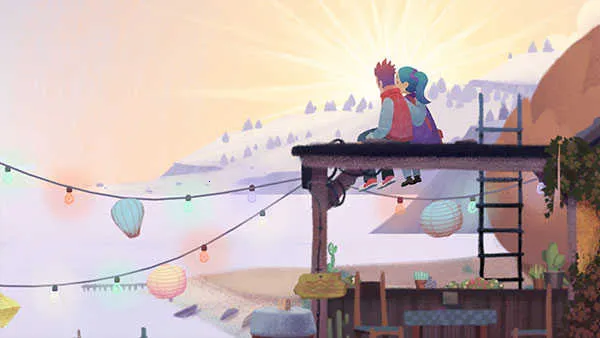 继续轻点远方小屋,老人将自主跨越山谷,径直走向门前长椅。坐下后,点击屋檐上依偎的情侣剪影,他们悄然互动,随之浮现出泛黄记忆——那是故事真正的起点。