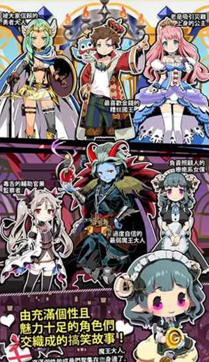 它的玩法丰富多样,比如进入剧情界面点击NEXT推进剧情,按指引点击获取奖励,还能在属性界面提升角色等级。你可以组建魔王大军,通过金钱收买怪物同伴。能打破传统角色定位,对阵勇者、国王等。经营牌桌与国王打牌,乐趣十足。剧情是日漫风格,有魔王和傲娇领航员的温情故事,以及与勇者公主的回忆。