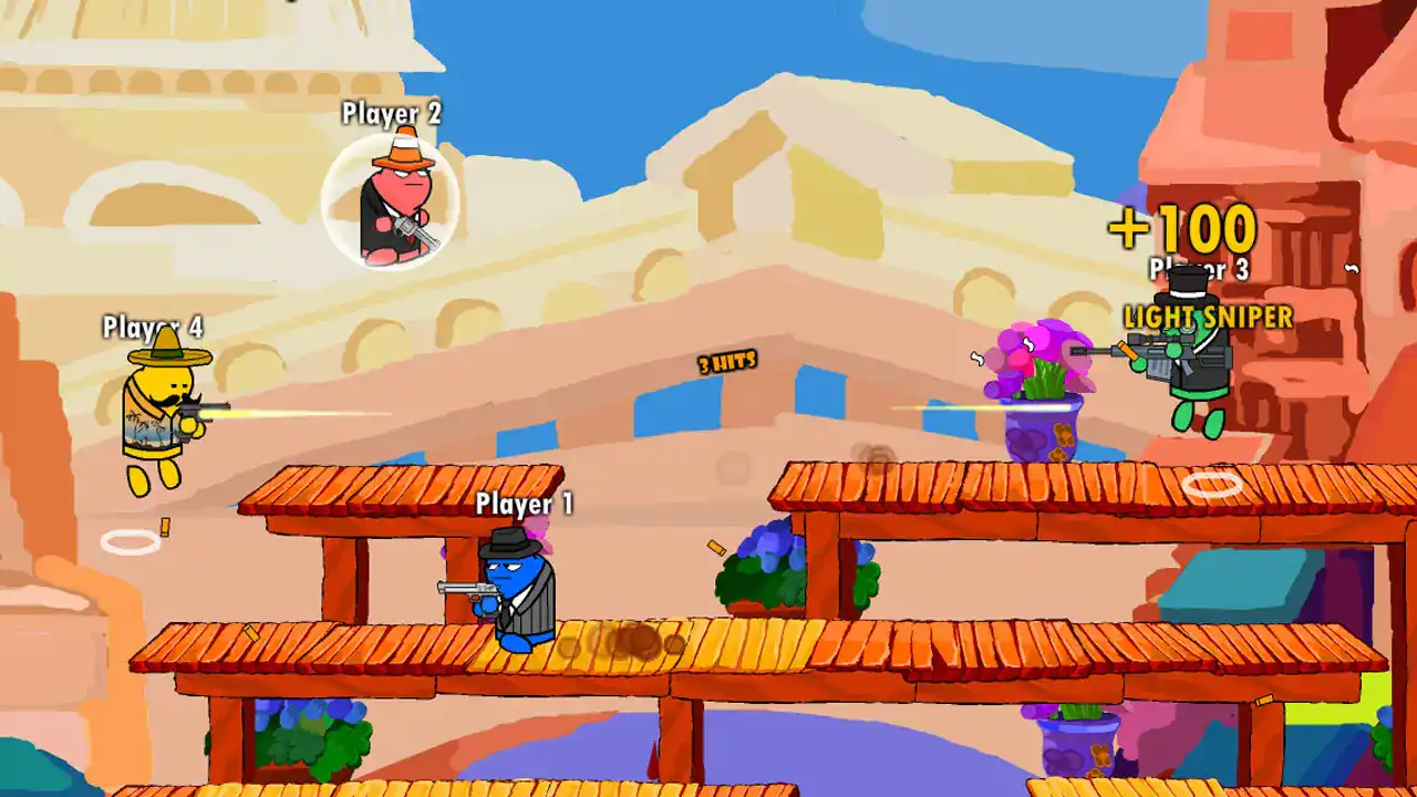 3. 创新的击退值替代传统血条,中弹后敌人会后仰腾空甚至飞出平台,大幅提升操作反馈与战术空间。