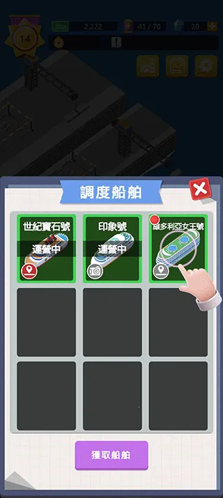 7、你要不断的获取新的船舶,这样就能接待更多的旅客;