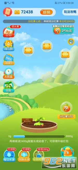 3. 升级有惊喜:每次升级果树浇水可获金币现金奖励,活跃30天必得价值2030元当季畅销水果,免费包邮。