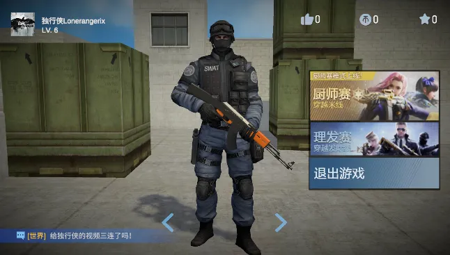 穿越米线是一款由B站up主独行侠自制的创意同人射击游戏,融合穿越火线美术风格与全新玩法。有厨师赛、理发赛等模式,武器多样,场景真实,操作简单易上手,带来欢乐射击对战体验。